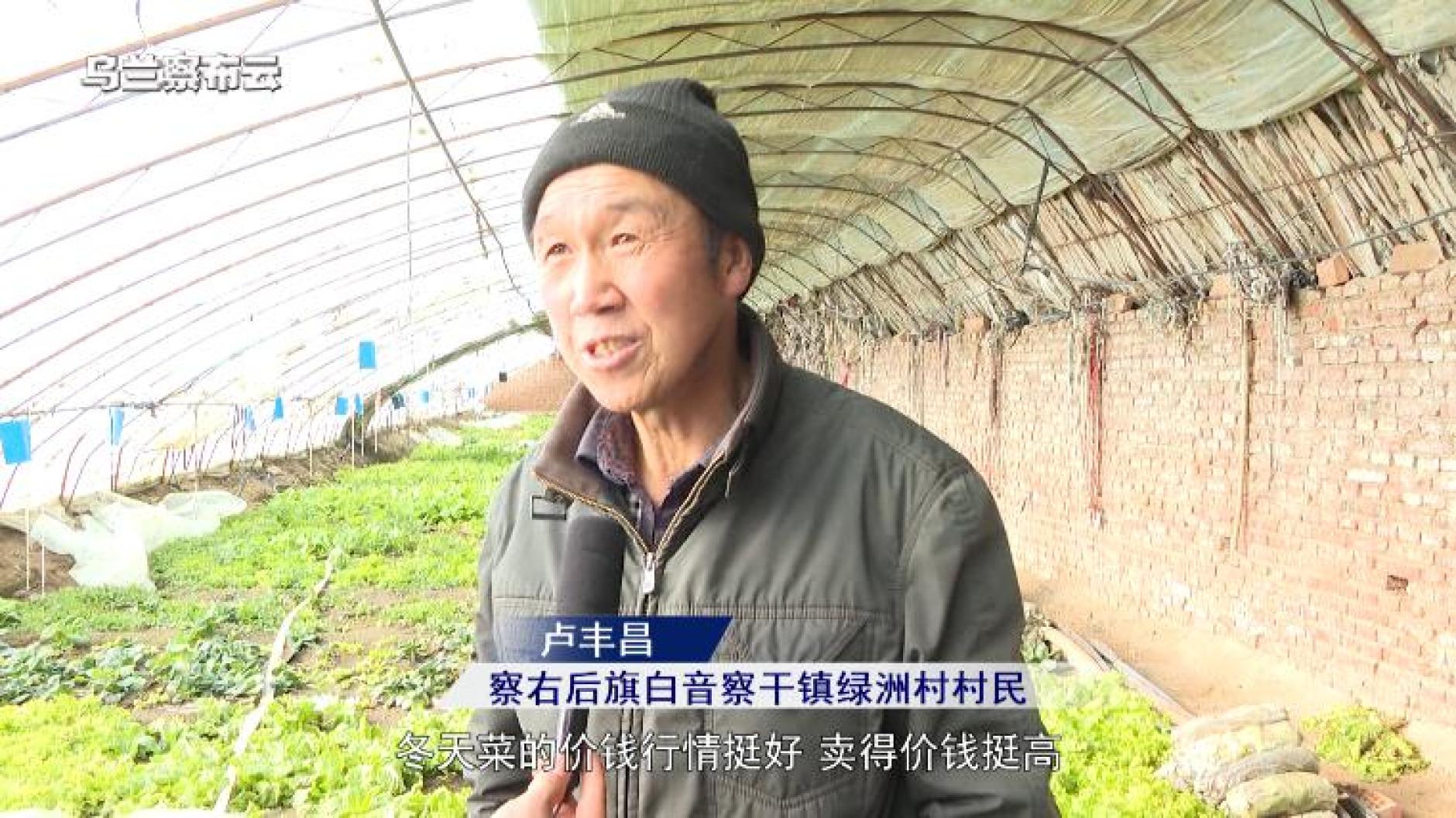 察右后旗农牧和科技局经济作物工作站负责人 王恒:全旗日光温室大棚将近一千座,能种植越冬蔬菜的大棚将近二百座,现在我们能完全进行越冬种植的有四到五个专业合作社,都可以生产越冬蔬菜,今年越冬蔬菜的效益是比较可观的。今年受罕见的低温影响,越冬蔬菜产量受到一定的影响。但随着最近气温回升,各地蔬菜种植户加强田间管理,根据种植作物特点,早作准备,采取有效措施,确保冬季果蔬生产与供应正常进行。