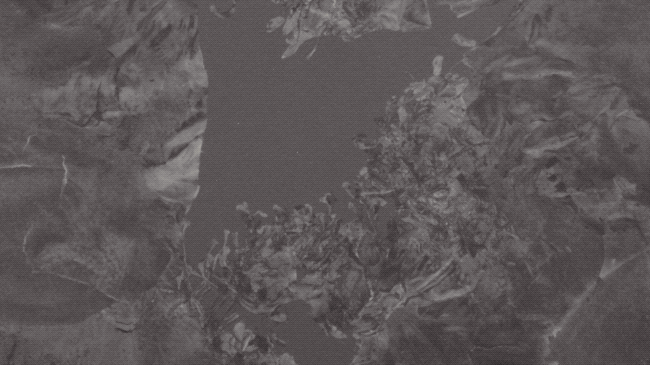 走近才发现,是玫瑰花瓣若有似无地飘在这片浓郁的灰色上,又好像融化在背景里。