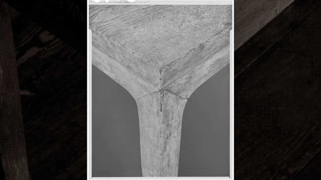 2020年4月创作的三联作品家具系列中一件三联新作,拍的是明代素工平头案的三个局部,每张画面都有一个亮点,现实中是木材交接处的暗部,秦一峰觉得不仅去“读”,还可以去“听”。三种声音,组合在一起形成对话。