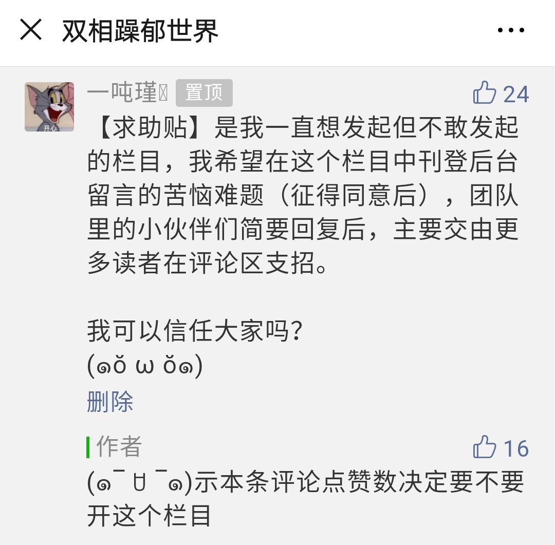 在【求助贴】栏目中,我们会事先征得求助者同意,刊登后台留言的苦恼难题,团队里的小伙伴们简要回复后,主要交由读者们在评论区支招。