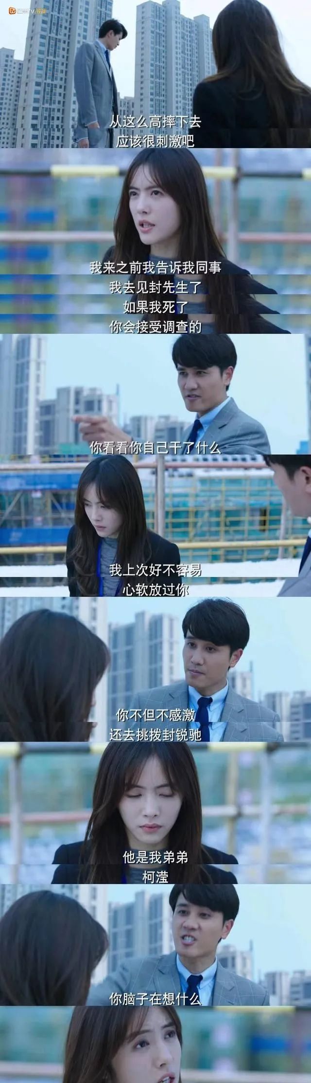 有一场柯滢被骗到天台,被恐吓掐脖子的戏,扮演封潇声的男演员临时发挥,把纸条狠狠扔在柯滢脸上,蔡文静的情绪一下子被带起来了,“那一刻的愤怒很真实,飙戏的感觉特别过瘾。”