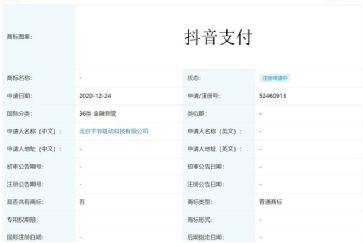 据悉,早在2019年,北京字节跳动科技有限公司就已申请过“抖音支付”的商标。公开信息显示,去年12月24日,抖音申请注册“抖音支付”商标,商标状态为“商标申请中”。