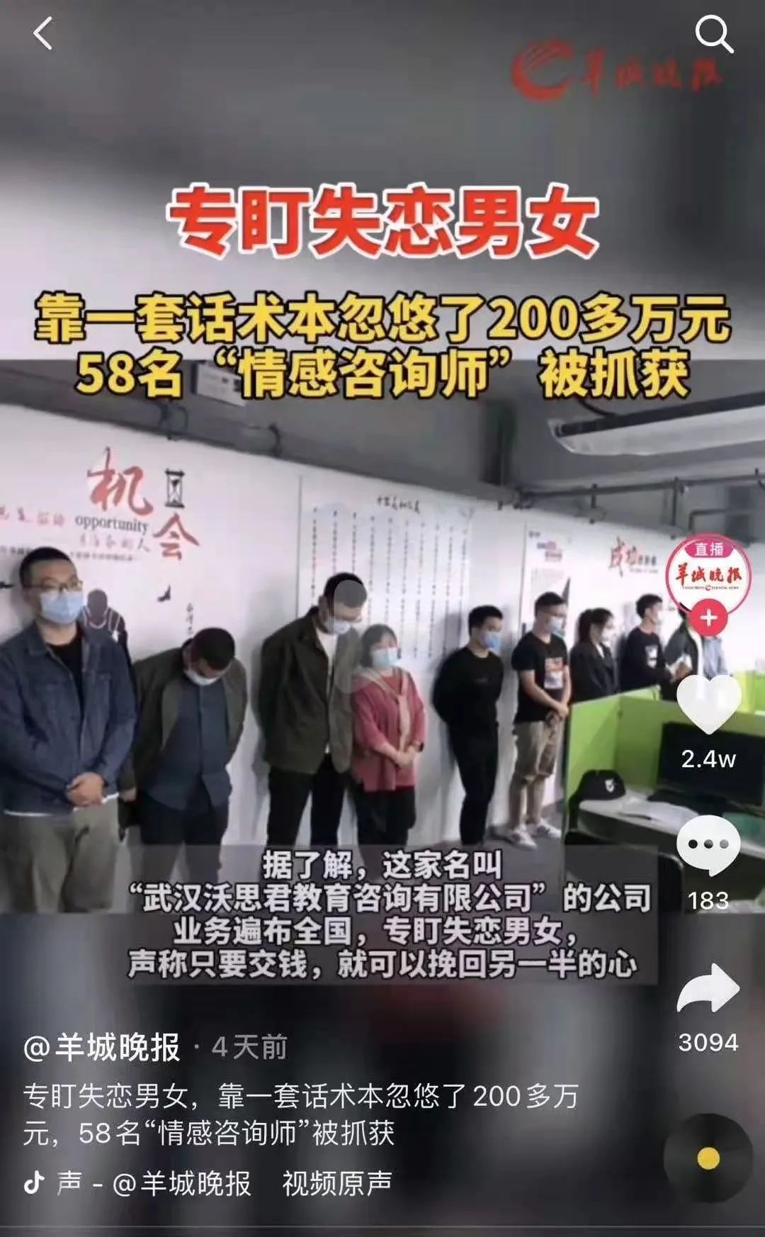 因此一些打着情感挽回为幌子的“情感导师”、情感咨询机构纷纷上线