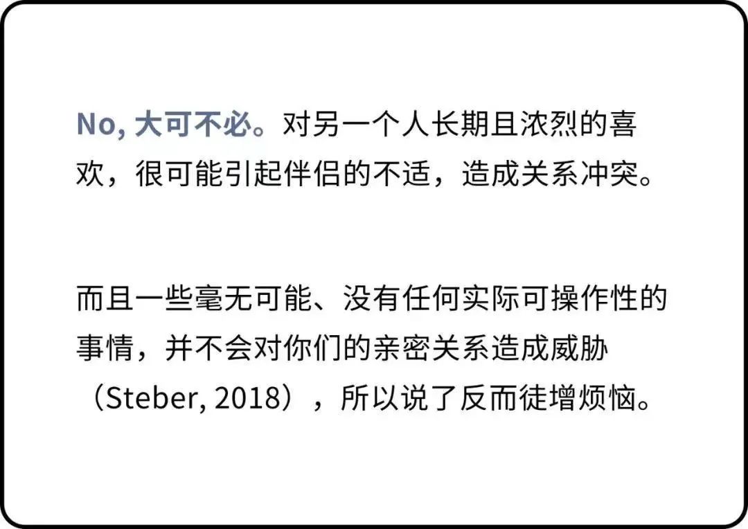 在亲密关系中,适当幻想是必要的。研究指出,人们对伴侣和关系保留积极幻想的程度与ta们对关系满意度呈正相关(Murray & Holmes, 1993)。