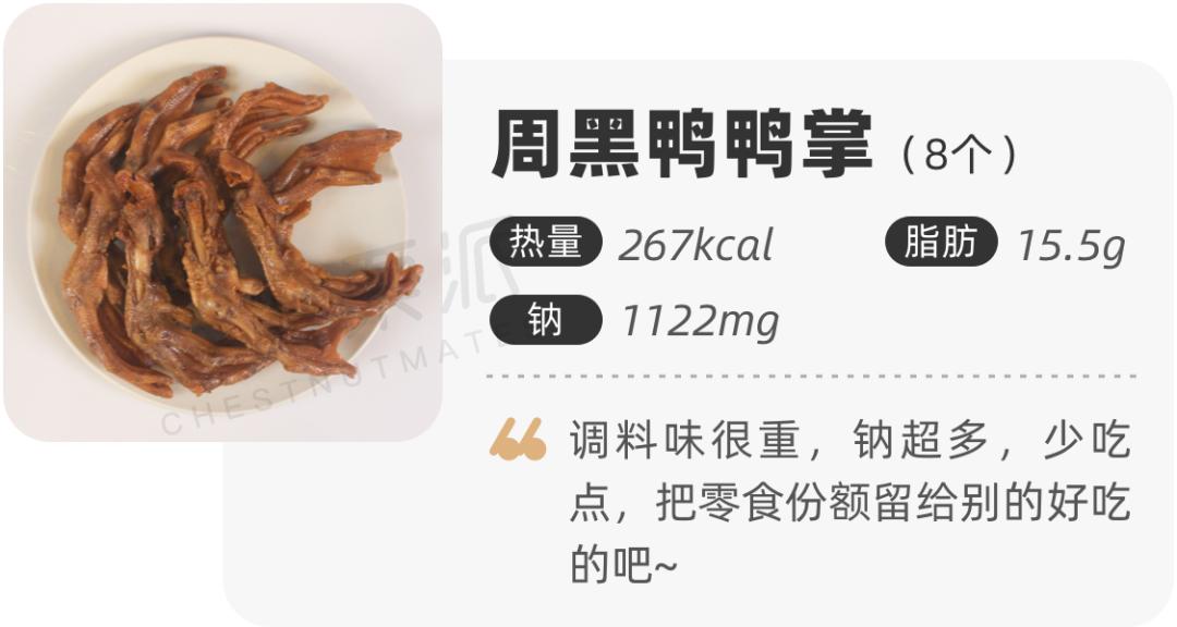 千万别以为有了这15%不健康的配额,就拥有了一张王牌!吃2个周黑鸭鸭掌,不到50kcal,但如果你还吃了1包薯片,1包辣条,那热量蹭蹭蹭就上去了。。。
