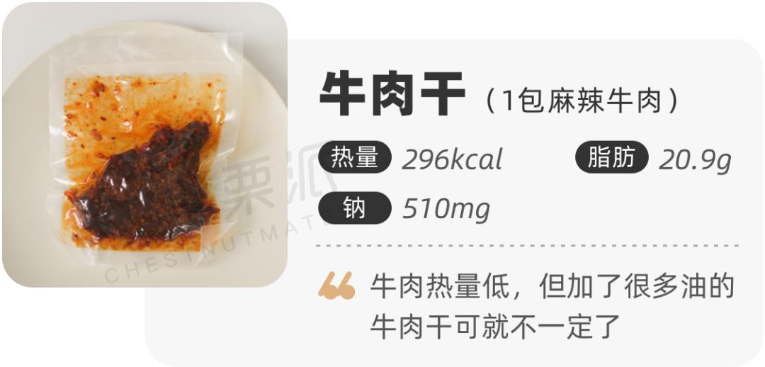 还是选择风干的那种牛肉条吧。虽然钠含量和油不会少,至少添加剂会少一点。