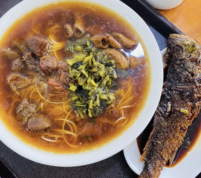 面是面馆自制的,火候到位,面身宽滑。安利爆鱼焖肉双浇头,爆鱼无腥,焖肉软糯,回味悠长,吃了根本停不下来。