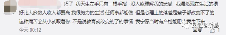 在这条评论下也有一些人反对。(其中的一些回复不免有些激进)到这里,我们不妨再换一个角度来思考这个问题:如果产检查出胎儿存在畸形,是不是不管程度轻重,都一定要放弃?
