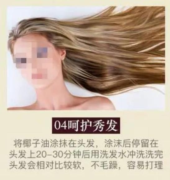 椰子油能够在头发表面形成润滑膜,减少毛皮之间的摩擦,起到润滑作用,对各种发质都有防止梳理损伤的作用,但这种原理其实跟其他护发产品类似,没必要非要用椰子油。
