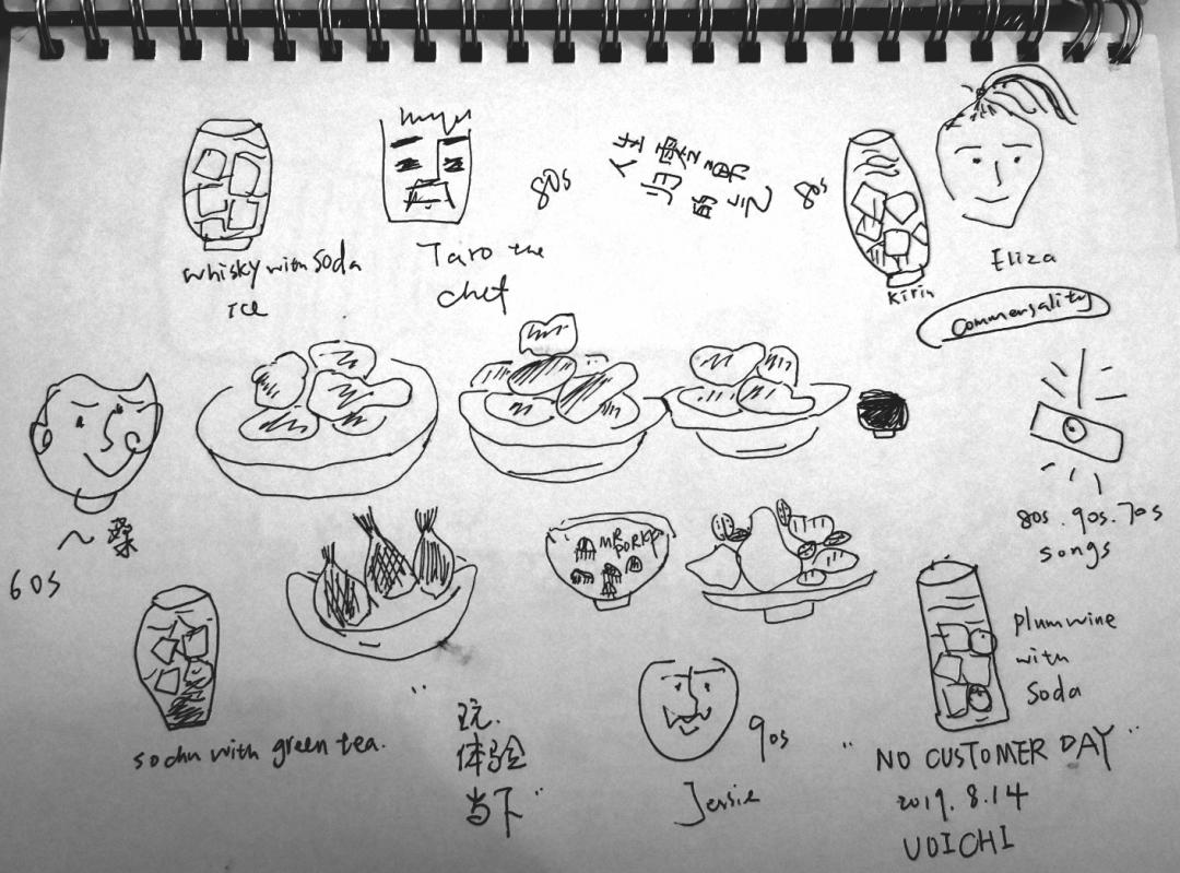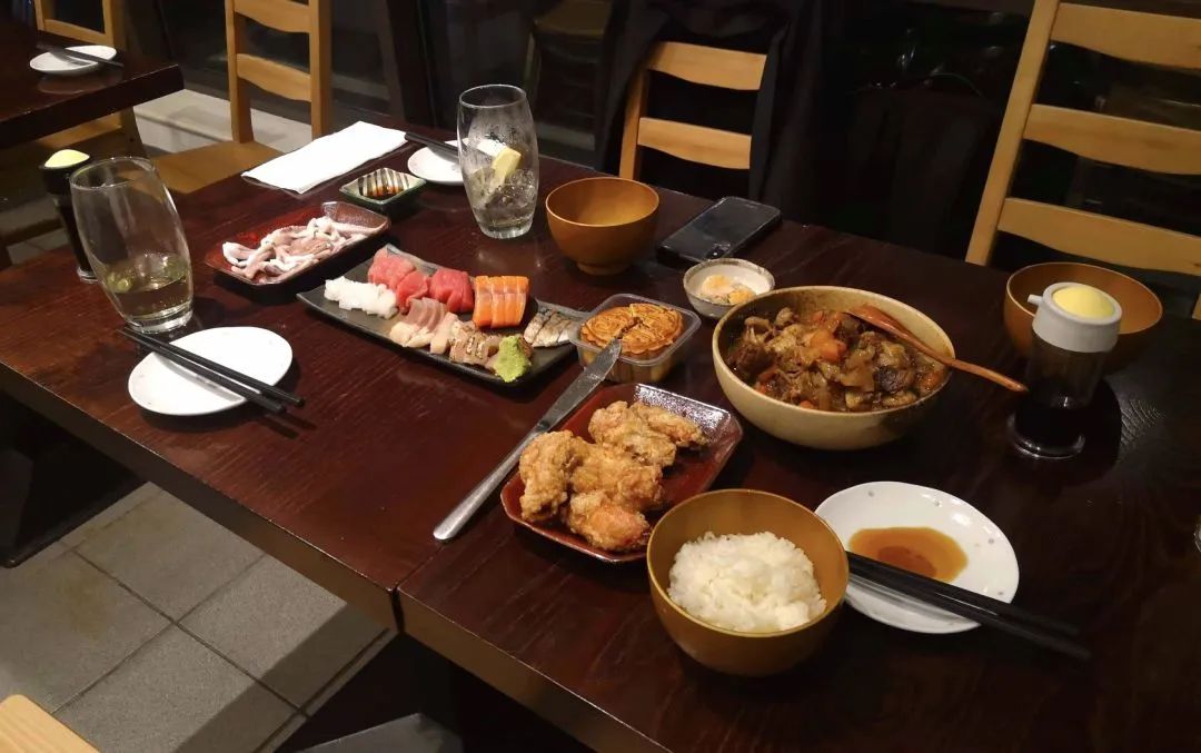 没有客人的一晚,4个人吃韩式炸鸡,听欧美老歌后来在Uoichi做得越来越顺,Elisa把能教的所有工作都教给我,放心让我点餐、结账之外,也让我在她忙外场客人时,协助好Taro出餐。三个人分工配合得很好,一旦营业起来,我就不能用手机,要时刻关注有什么能做的,比如是否要加茶、添酒,客人吃到什么程度,是否可以上剩下的菜或者加菜等等。偶尔太无聊看一下手机,被发现就是Elisa打屁股。