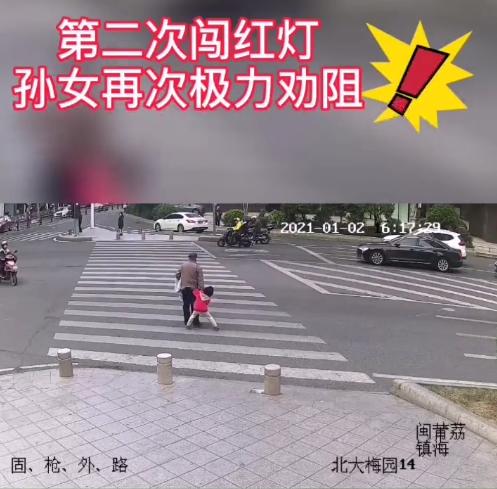 一位爷爷带4岁孙女闯红灯