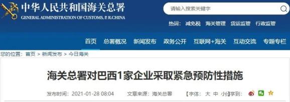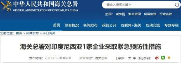 1月28日,海关总署官网连发四文,对印度尼西亚、巴西、俄罗斯、巴基斯坦四国进口食品外包装样本中检出新冠病毒核酸阳性事件,根据相关规定,对这四国四家企业采取紧急预防性措施。