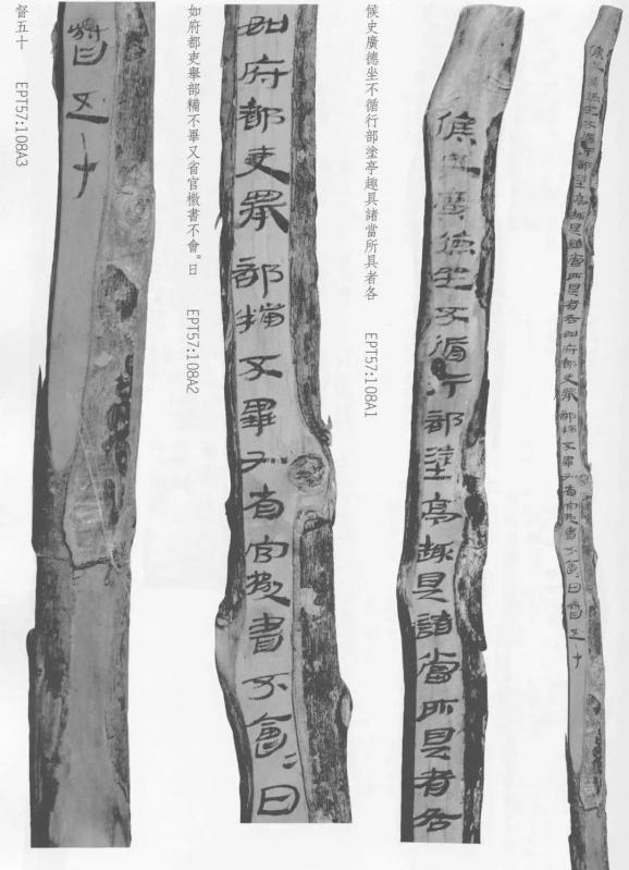 当然,一旦无法完成要求的执行任务,还有很严厉的惩罚:1974年出土于甲渠候官遗址的一套胡杨木简牍上(EPT57:108),记载了一个名叫广德的侯史受罚的记录:“候史广德坐不循行部、涂亭、趣具诸当所具者,各如府都吏举,部糒不毕,又省官檄书不会会日。督五十”,一面写候史广德所监督的各个烽隧管理中存在的问题的具体事项。檄文分22栏书写,逐条列举了候史广德所督管的第十三、十四、十五、十六、十七、十八6个隧的守御器损毁丢弃、防御设施废弛败弊的情况,问责非常严厉。
