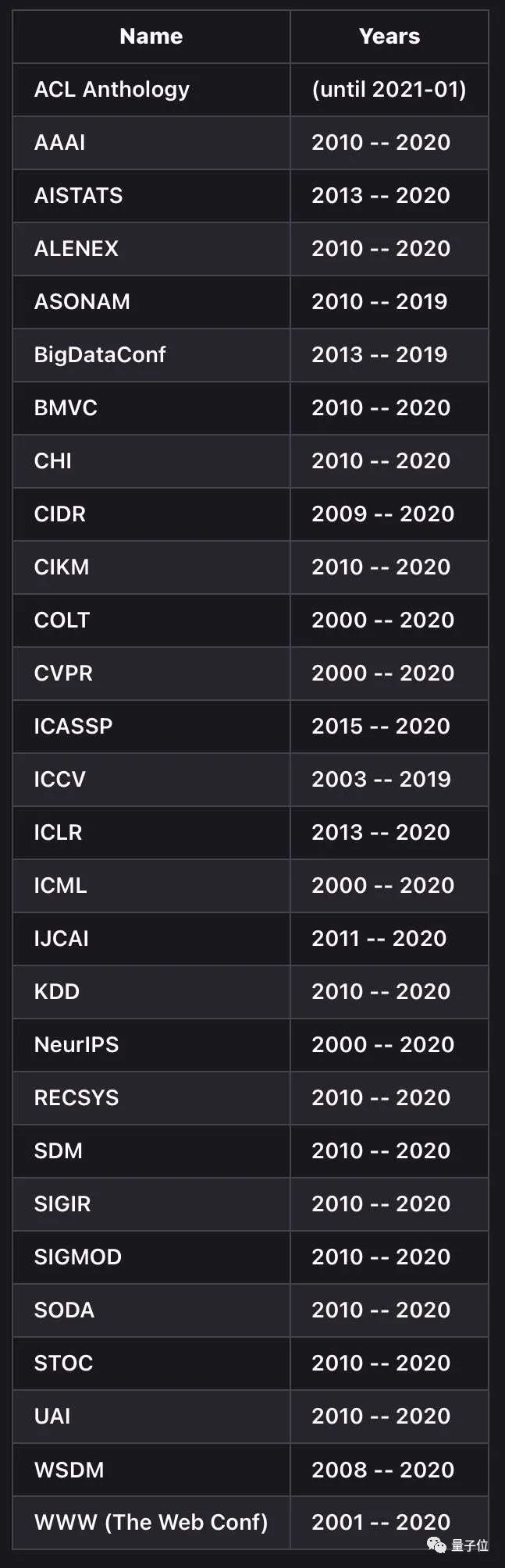 除此之外,还可以自行手动添加会议,只需从 DBLP 中下载会议 bib 文件至 data 文件夹,然后将其转换为 json 格式,再把路径添加至 bib_list.txt就OK了。