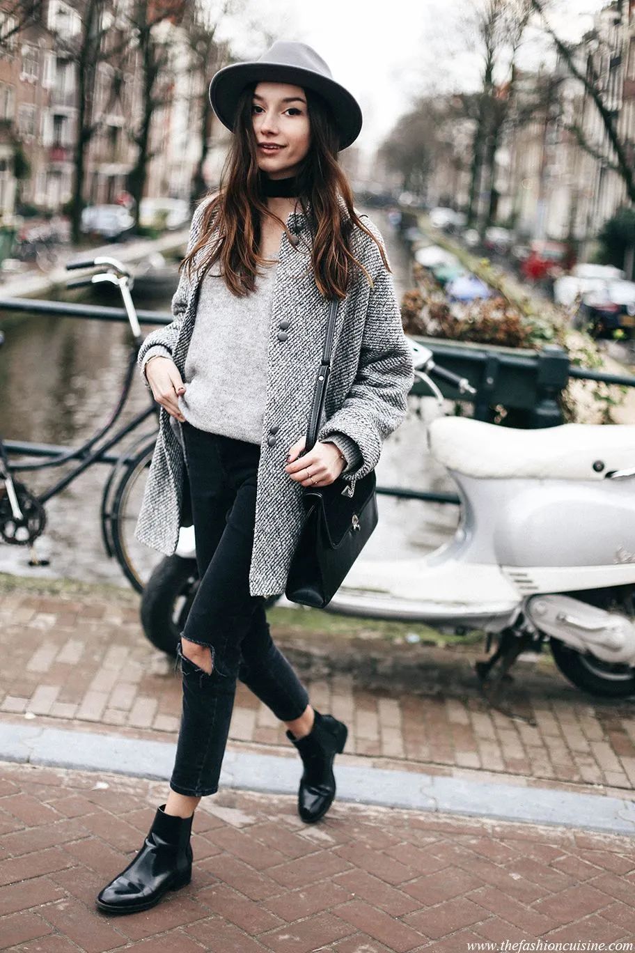 3、贴身长裤搭配All black是最省事的做法,灰黑色搭配效果也不错。