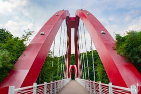 揽月桥设计灵感来源于扬帆起航,黄色拱形主塔十分亮眼。