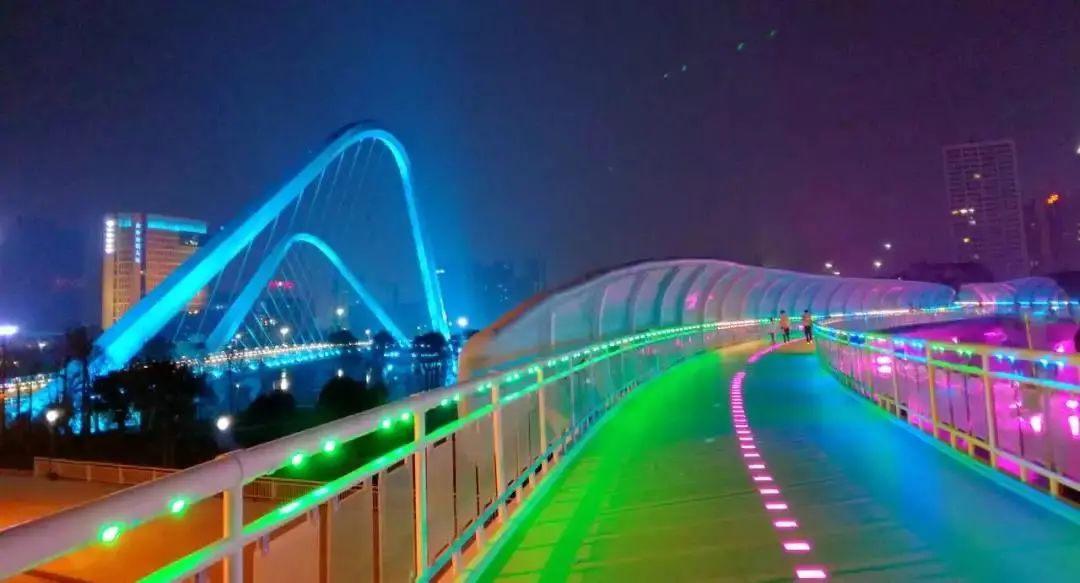 桥上的夜景,更是独特。桥底或桥面多彩的小灯,照射在桥上,不断变换各种颜色,新奇且靓丽。和家人一起在桥上走一走,多有趣!