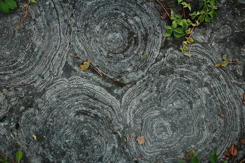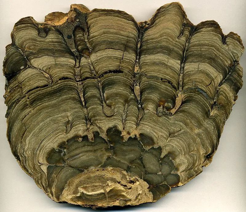 产于怀俄明州的叠层石化石 | James St. John / Wikimedia Commons使用生物双名法给沉积构造命名这件事看起来似乎有些荒唐。但是双名法的使用却使得不同时代和不同地理位置的叠层石的对比研究成为可能,从此以后叠层石变得像其它的化石一样,可以用来确定地质年代,也可以用来推测古生态环境。因此越来越多的科学家成为叠层石双名法的使用者和捍卫者。至此,叠层石也就理直气壮地成为使用“林奈双名法”的冒牌物种啦!