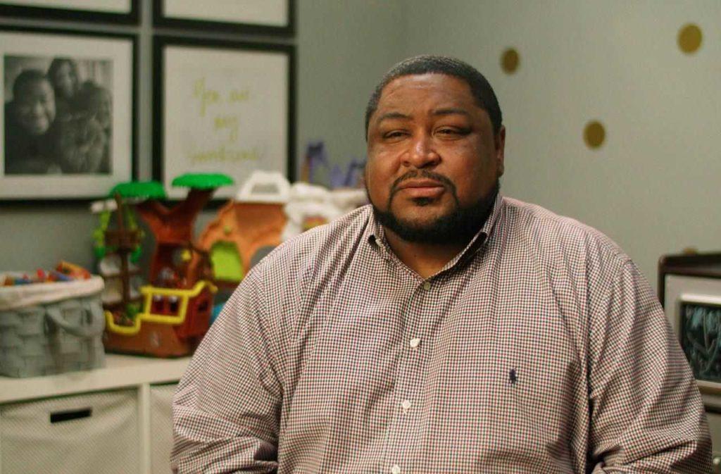 威廉姆斯幸福的一家在审讯室里,FBI 举着三张照片,两张是被盗商店的监控照片,另一张是威廉姆斯的驾照照片,不厌其烦地引导威廉姆斯,希望他赶紧承认是自己盗窃了价值数千美元的钟表。