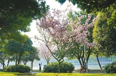 成都锦江绿道上的海棠(孙海 摄,图片来源:四川日报)“花重锦官城”就是海棠