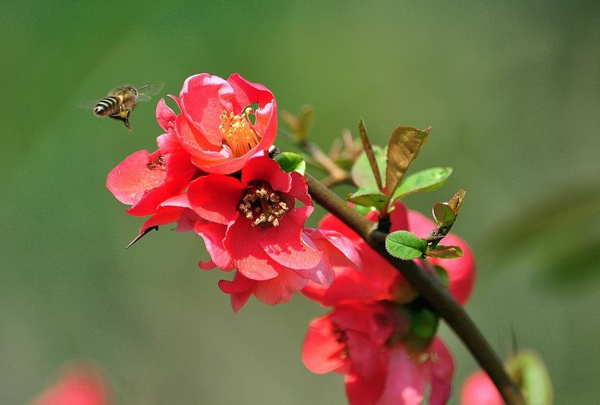成都塔子山公园内的贴梗海棠(孙海 摄,图片来源:四川日报)海棠红绝放翁花