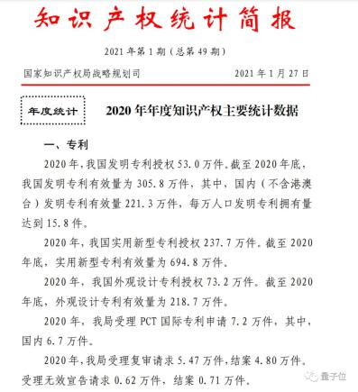 国家知识产权局还发布了《2020 年年度知识产权主要统计数据》。
