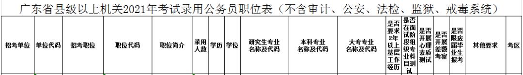 招录公务员职位表: