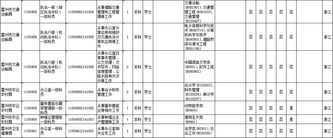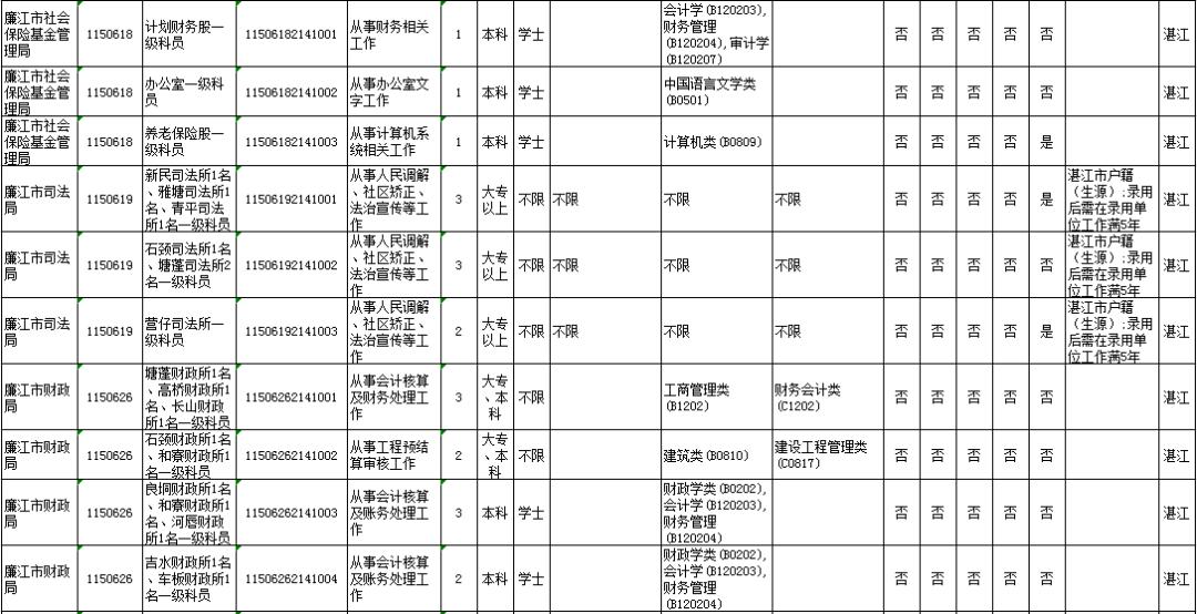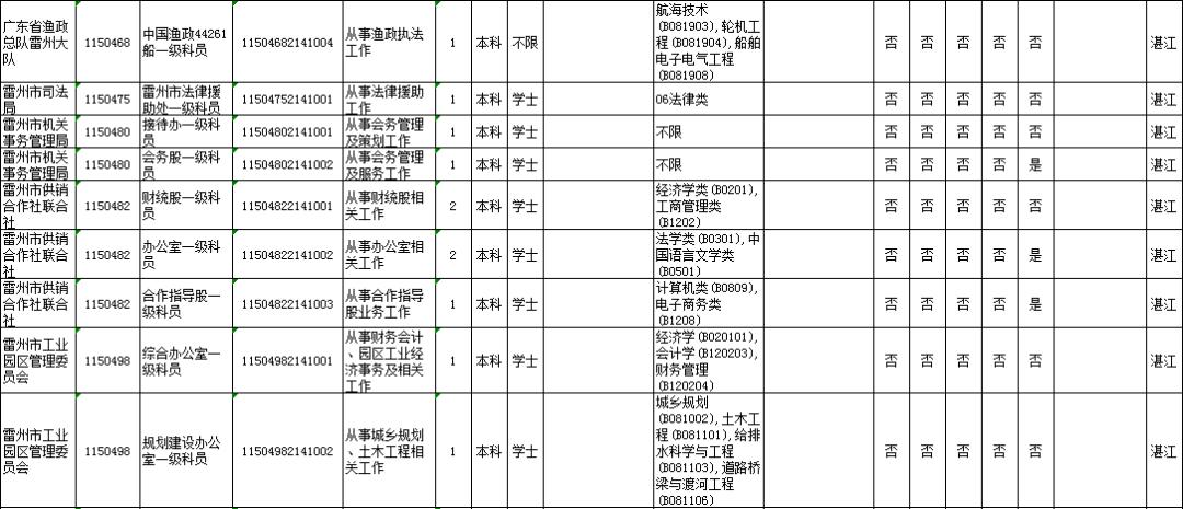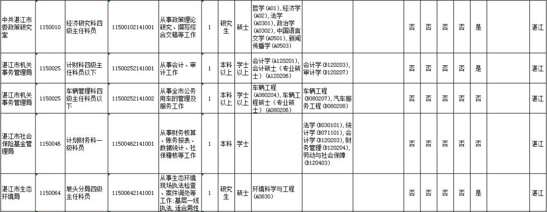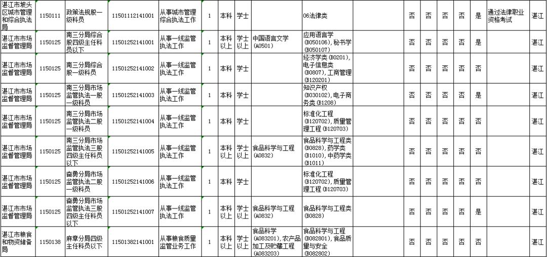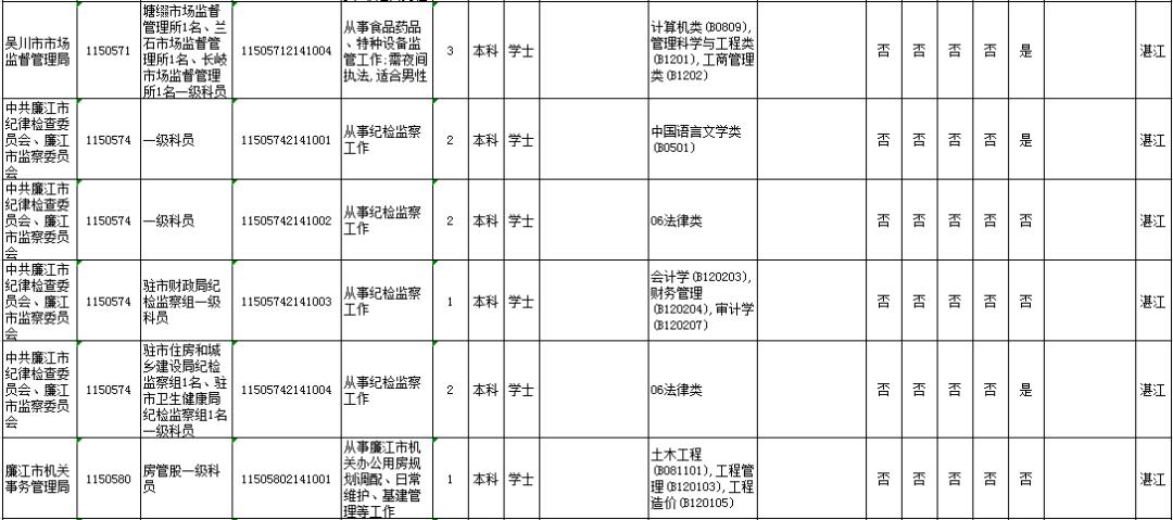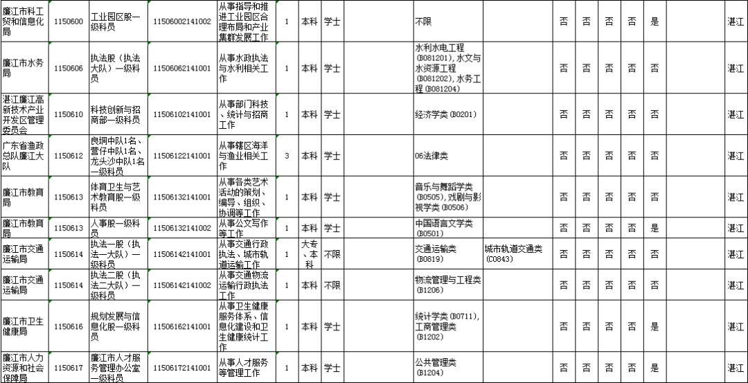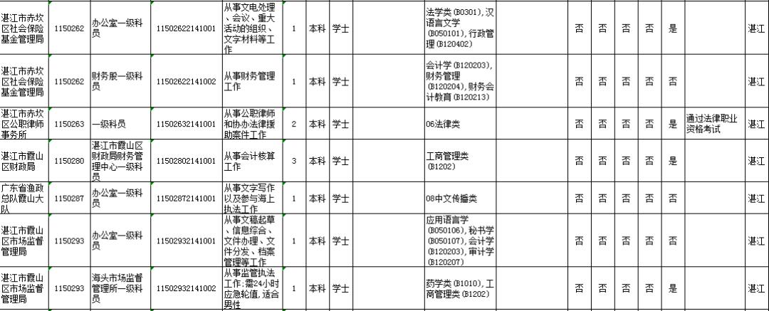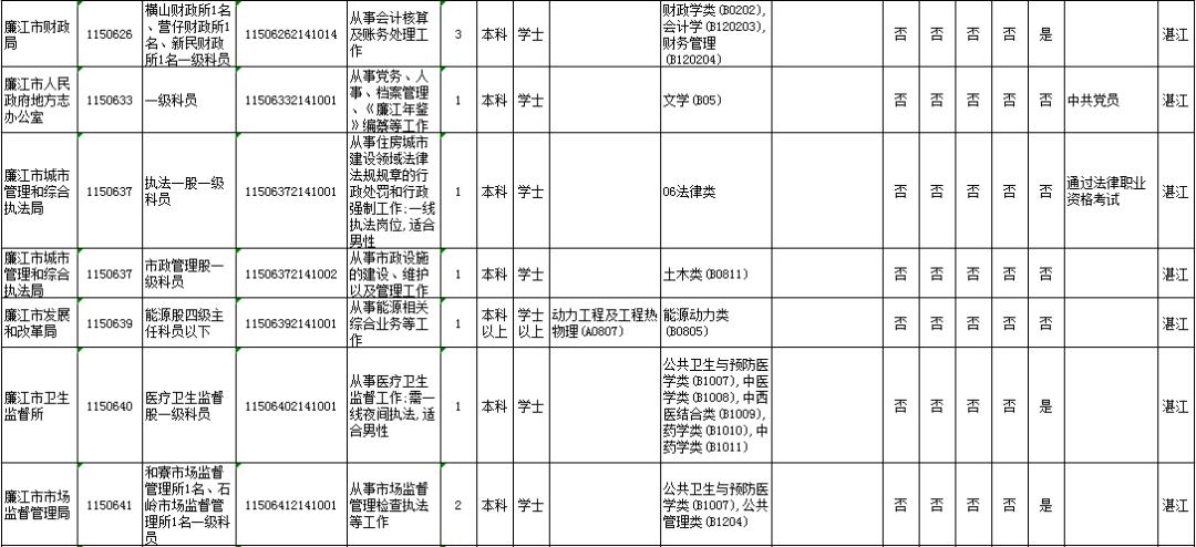 湛江市具体有哪些职位招考?