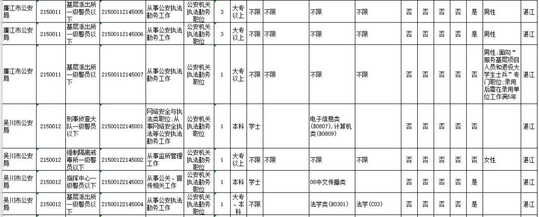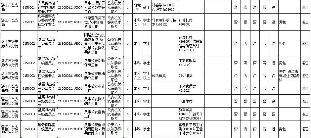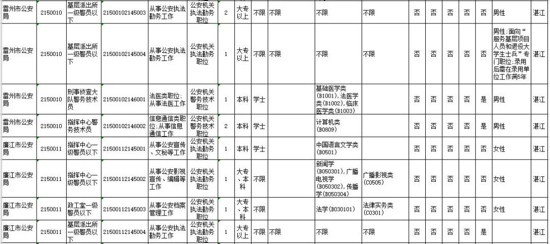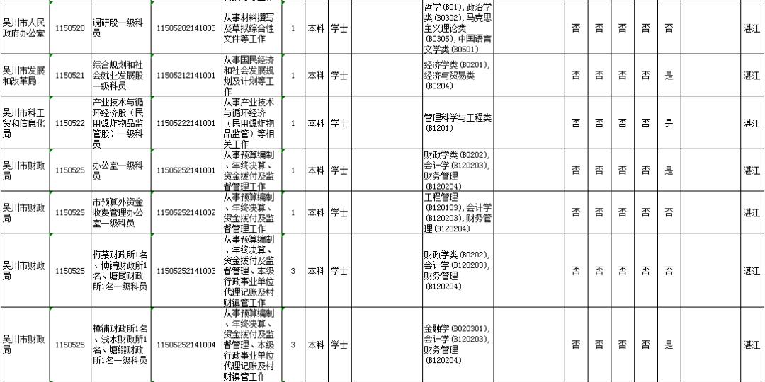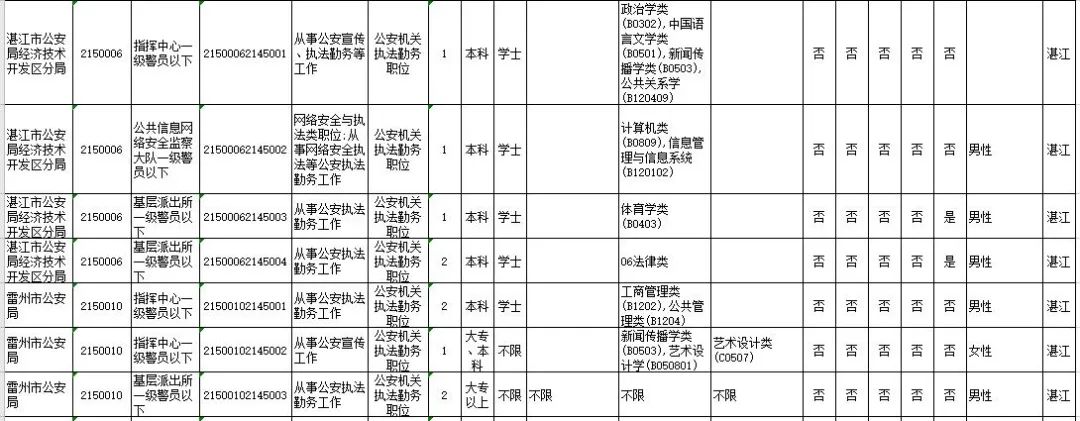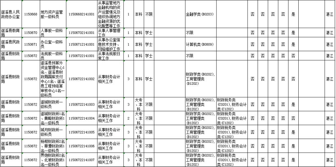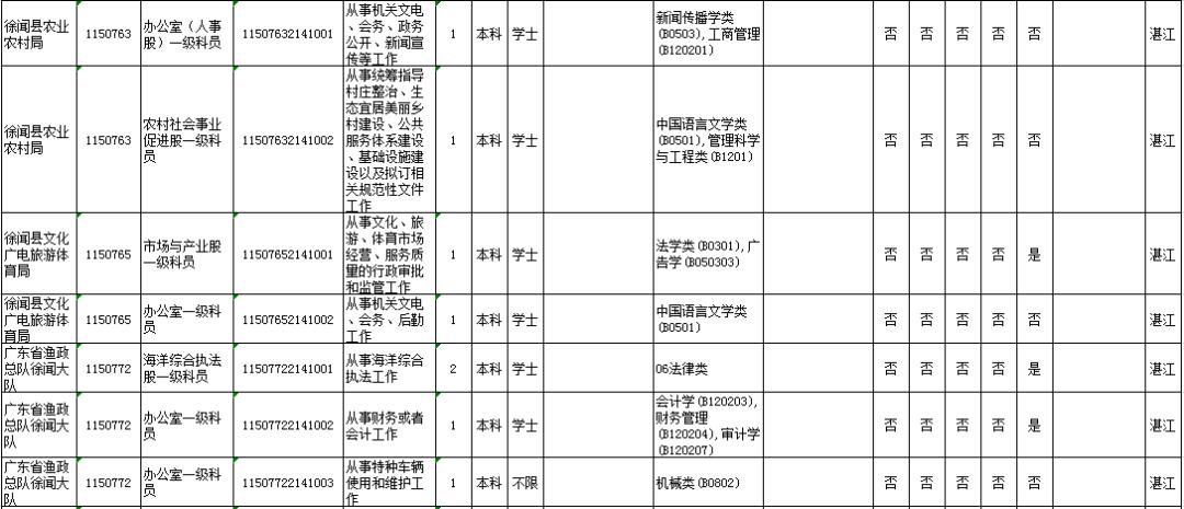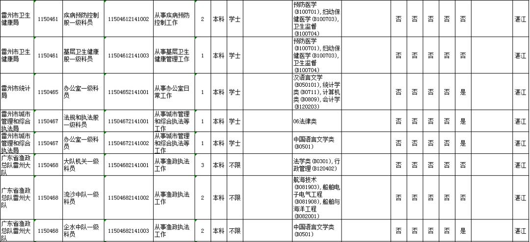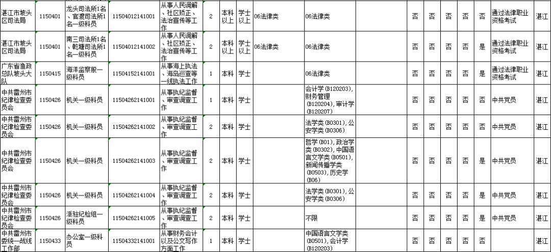 湛江市具体有哪些职位招考?