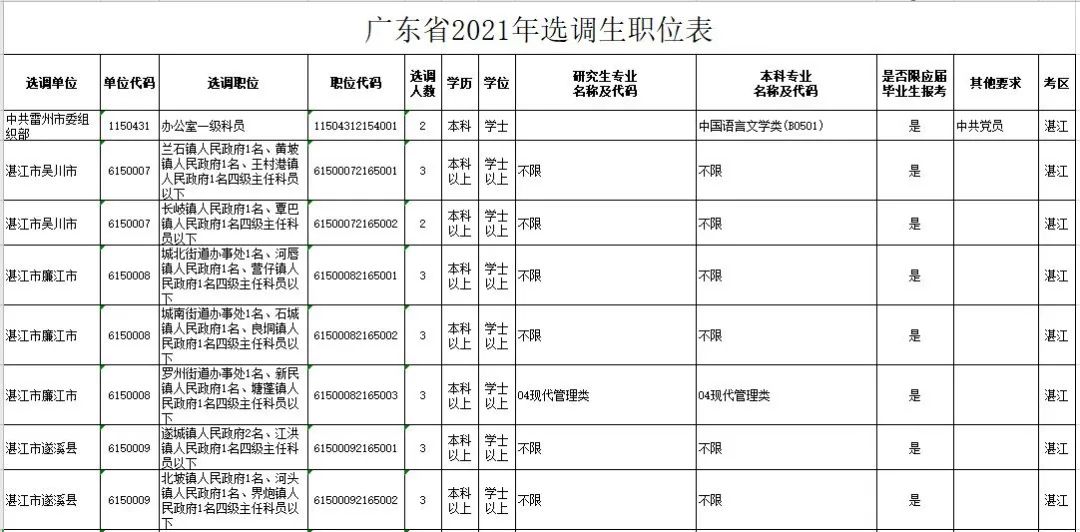 原标题:《湛江地区总招录1162人!2021广东省公务员考试详细职位表出炉!》