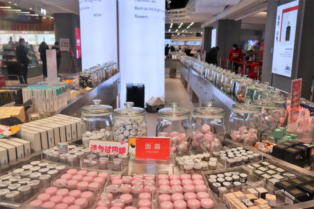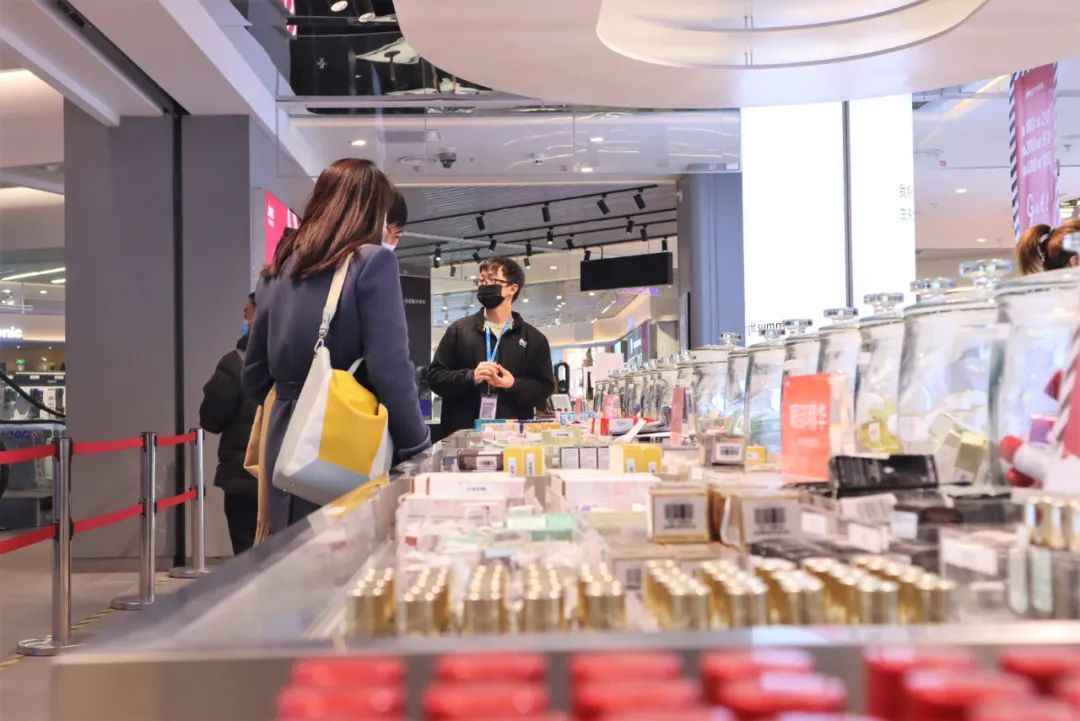 在这块专门辟出的300平方米区域里,既有SK-II、雅诗兰黛、香奈儿、海蓝之谜、迪奥等国际美妆大牌,也有橘朵、滋色、稚优泉、COLORKEY等国产美妆头部品牌,商品品种超过1200个。