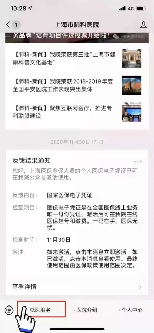 打开“上海市肺科医院”服务号并选择“就医服务”