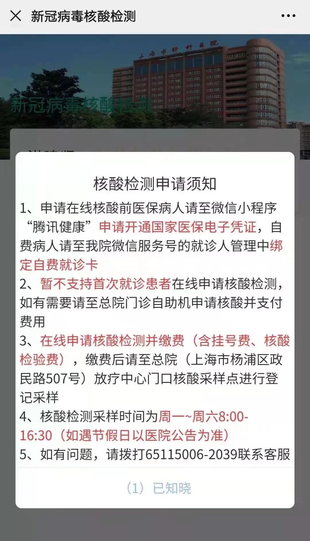 原标题:《【肺科•门诊】上海市肺科医院线上核酸检测预约流程》