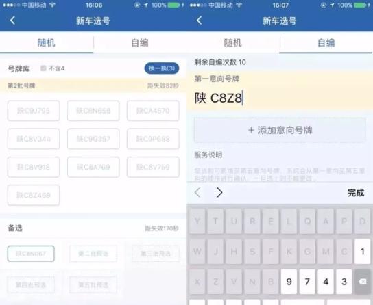 在线预选选择号牌时,可选择“随机选号”或者通过“自编选号”尝试编写符合自己喜好的号牌。第四步:选号方式有两种,一种是随机选号,一种是自编选号:随机选号和自编选号这两种选号方式无先后顺序。