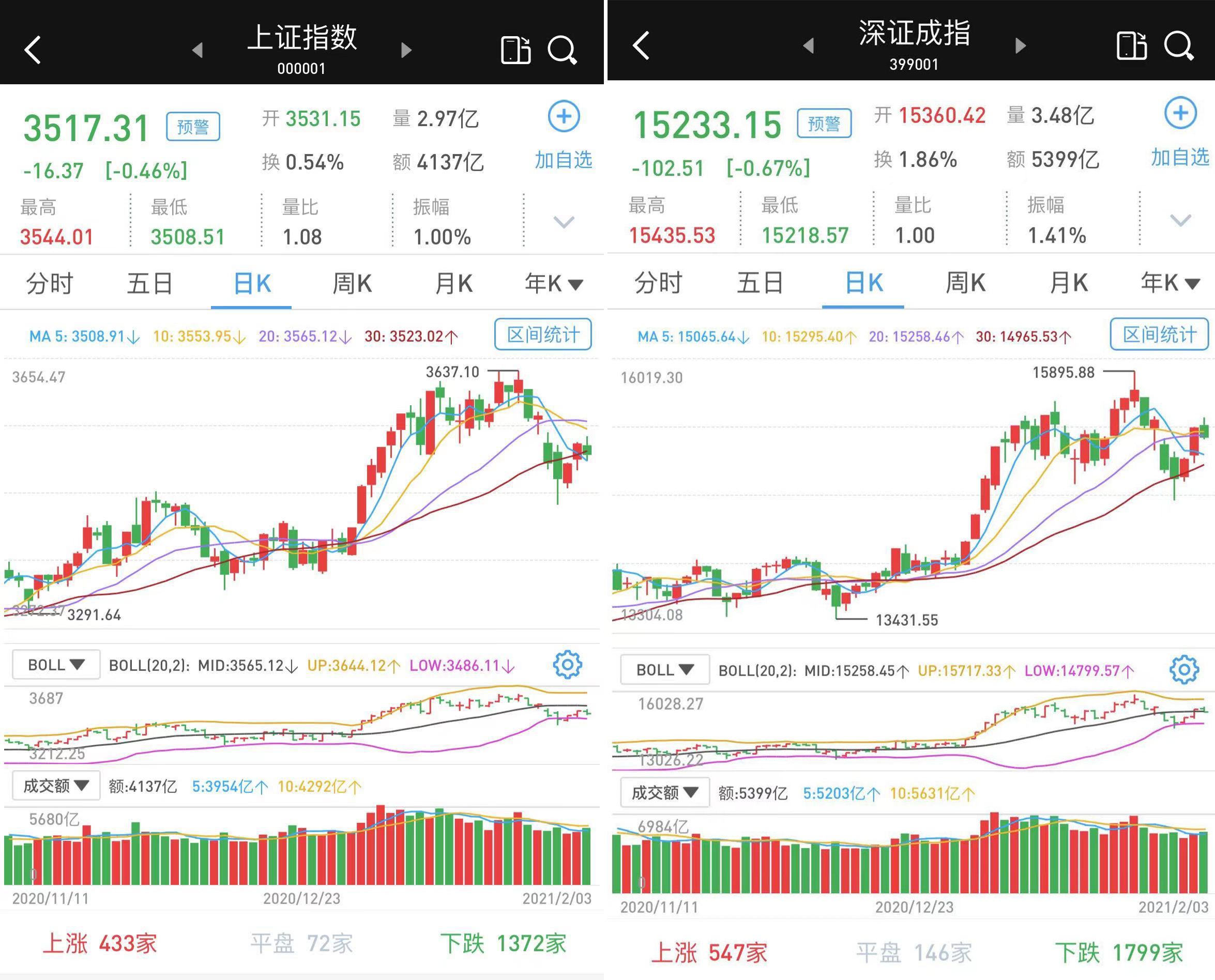至2月3日收盘,上证综指跌0.46%,报3517.31点;科创50指数跌1.94%,报1410.15点;深证成指跌0.67%,报15233.15点;创业板指跌0.15%,报3223.77点。