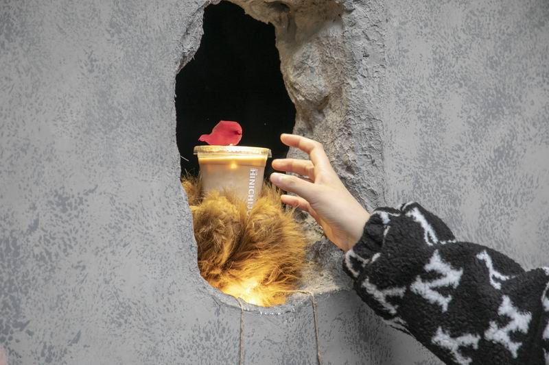 如今的熊爪咖啡一号店还在永康路上静悄悄地经营着,而熊爪咖啡二号店则开到了位于上海浦东陆家嘴的滨江世贸52+。延续了永康路店的没有门的水泥墙设计在商场里显得格外惹眼,考虑到与消费者的互动,墙洞数量增加到了3个,其中一个还是特别为小朋友设计的“儿童用墙洞”,高度约为1米1,方便小朋友与熊爪进行接触。