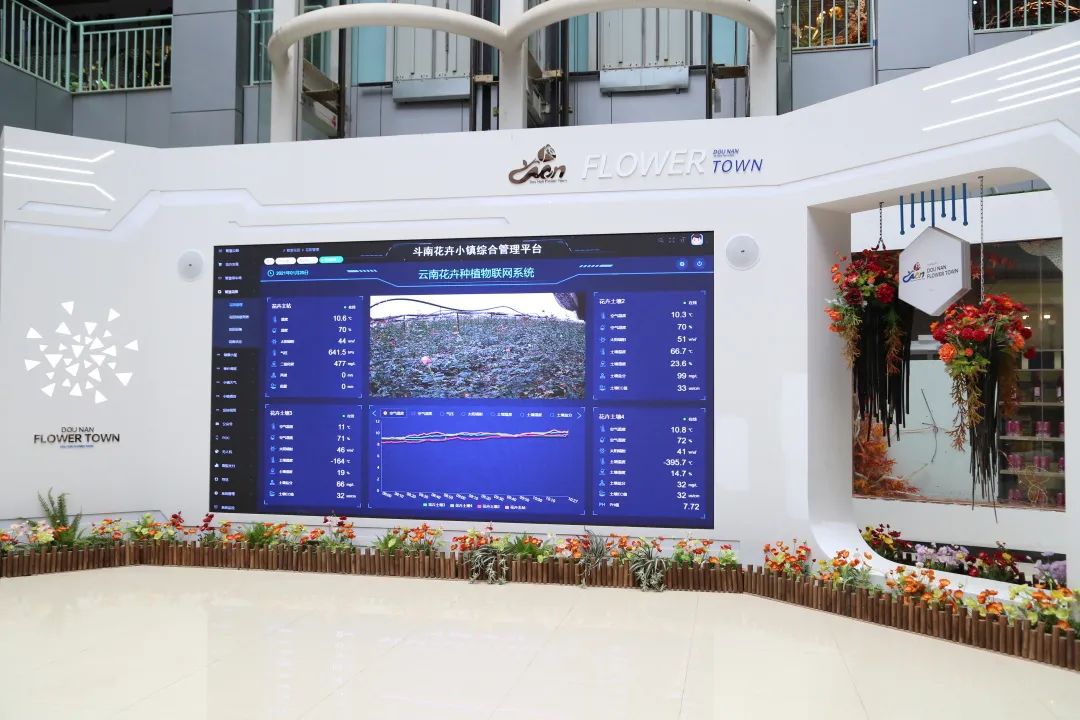 作为世界第二、亚洲最大的鲜切花卉交易市场,昆明呈贡斗南花卉产业园拥有各类鲜花品种。中国移动云南公司运用先进的5G技术,让这里成为了独具特色的5G花卉小镇。走进小镇综合管理大厅,映入眼帘的是5G+斗南花卉特色小镇智慧综合管理平台,在巨大的显示器上,切换着花卉交易量和成交金额等数据信息。在屏幕上还可以看到斗南花卉特色小镇卫生间使用情况的实时信息,便于商家和游客在人流高峰时段快速寻找卫生间。