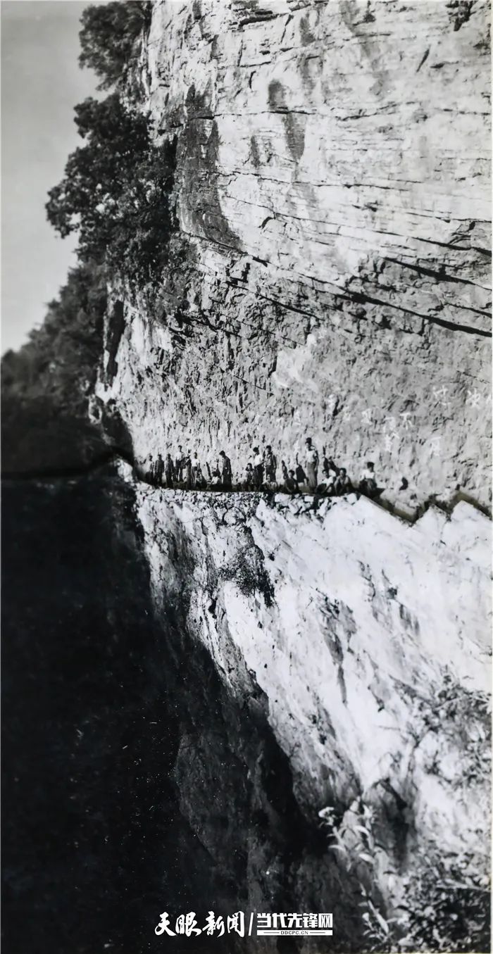 生机镇人民群众修建沟渠时的场景(资料图片)许天珍当年在老虎崖打下的木桩依然在峭壁矗立,静静地见证着那段一不怕死、二不怕苦的艰辛岁月。
