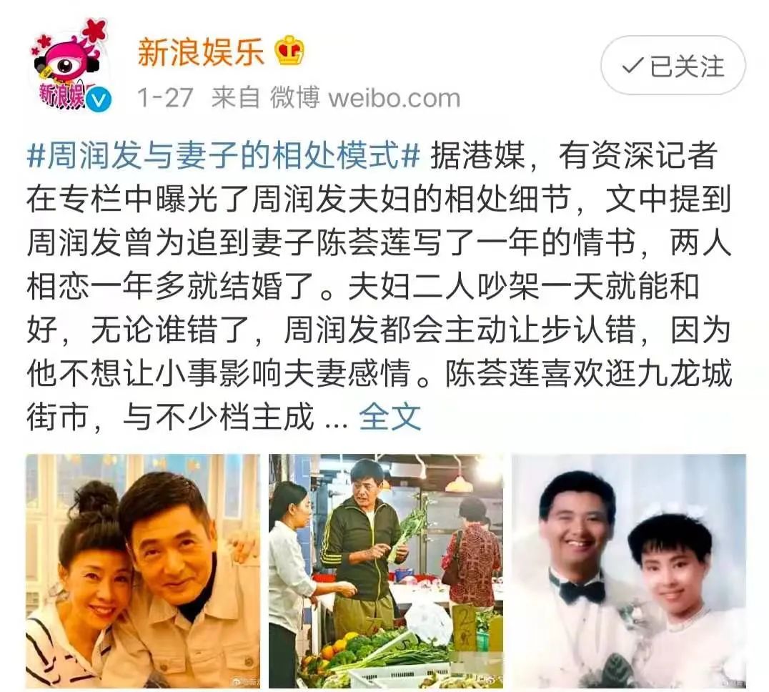 虽然发哥与妻子已经结婚34年了,却一如既往地恩爱,荧屏上“行走的荷尔蒙”硬汉,荧屏下甘愿为妻子化作绕指柔。