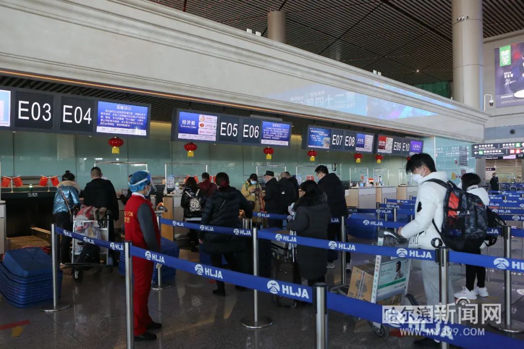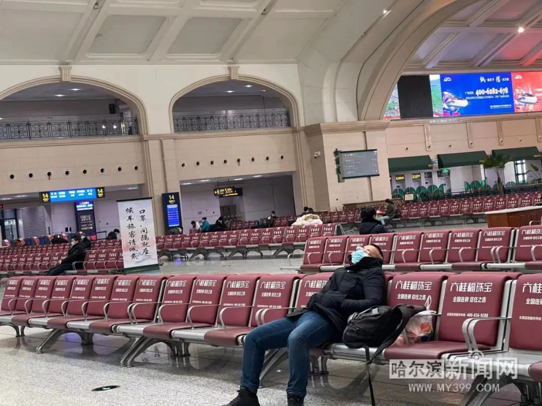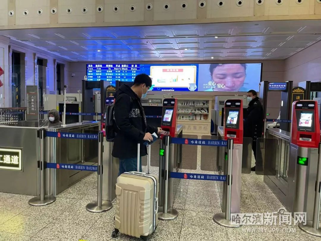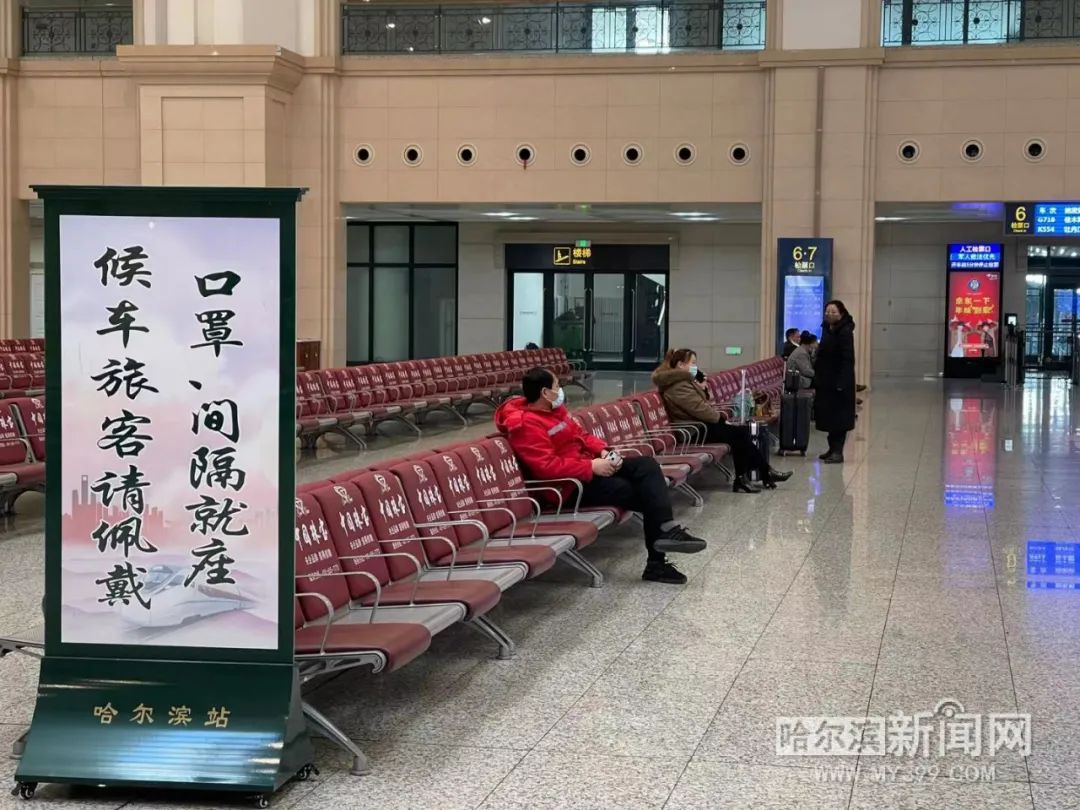 “放心吧!你看候车大厅都没啥人,再说我们也都戴好口罩了。”候车间隙,今年53岁的张女士正通过微信视频和在牡丹江老家的93岁老母亲报平安。14时,她和丈夫要乘坐G393次列车回老家。张女士夫妻俩在哈市从事批发生意,今年秋天老母亲得了重病,因为工作关系她没有陪在身边。“我妈妈重视春节,想看着一家人团团圆圆的。回家主要为了陪老妈妈。”张女士说,出行前她和丈夫每人都戴了两层口罩,也备好了个人消毒用品。当看到车站也定时病毒消杀、并做好疫情防控时,她觉得这次出行很安心。小年当天,哈尔滨机场运客量比同期大幅减少,预计机场全天计划起降航班112架次、运送旅客7000人次,这一数字较今年春运首日还少2000余人次。虽然客流有所减少,但机场仍然执行着最严格的疫情防控措施,确保乘客出行安全。