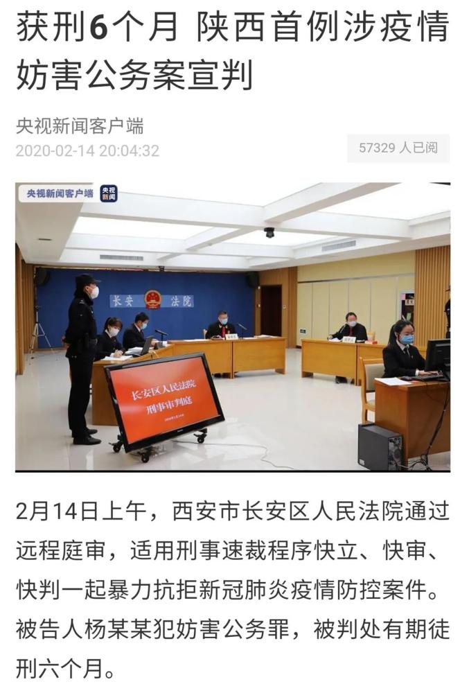 获刑6个月 陕西首例涉疫情妨害公务案宣判