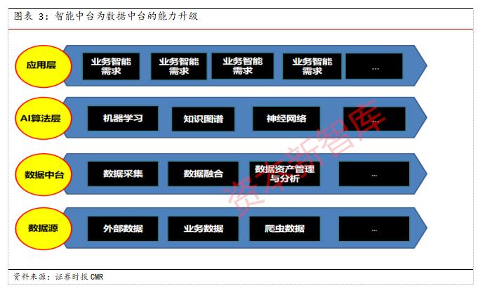 企业数字化转型的本质是敏捷智能地支撑创新业务需求,证券公司需利用金融科技进行将数据中台升级到智能中台: