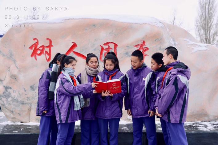 盛斯佳本科毕业后曾到新疆阿勒泰支教过一年,那一年里,“普法”两个字贯穿着生活始终。在遥远的西北边陲,她和研支团的伙伴们一起,举办了模拟法庭、宪法晨读等大型活动,也给支教地阿勒泰市第三中学里的每条主干道的命名增添了法治元素。