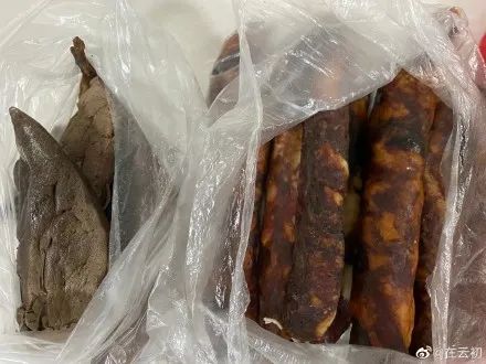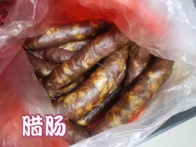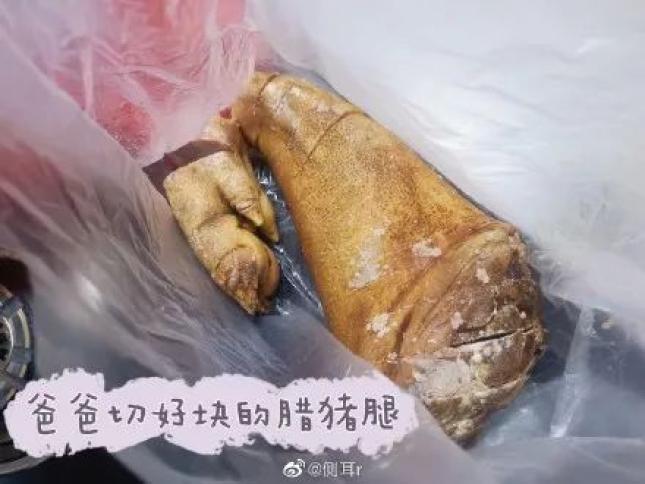 我爸给我寄的腊肠鸡鸭肉菜啥的,还有葱蒜香菜,说顺道把佐料也寄了,省得另外再买。