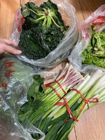 家里种的菜,还有大公鸡,爸妈自己收拾完,大老远寄来的。