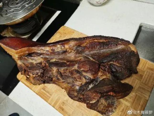 给爹说过年吃不上炸藕夹了,第二天我妈就说寄快递的箱子都准备好了。快递一收到老公就切了块酱牛肉,边吃边拍视频给爸妈,我爹还写了首打油诗。