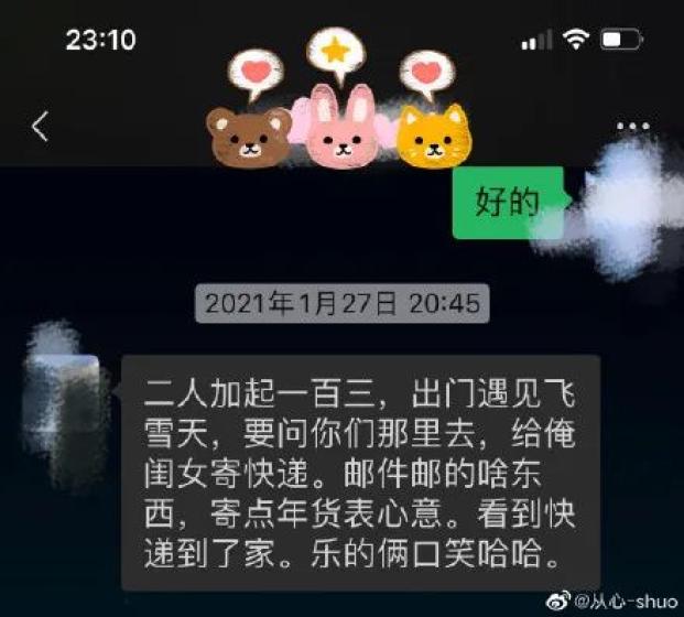 最后是一个“小彩蛋”:别人的爸妈寄的大多是吃的,