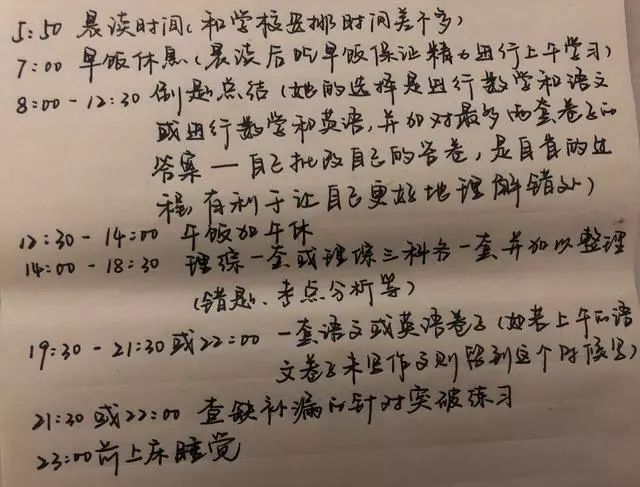具体到几点几分,具体到这个时间要上什么课,内容极其详尽,仿佛大家在这种详尽中能感受到一种认真自律的氛围,只要遵循它,学习成绩就能获得提升……