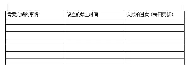 右边那一列的“每日进展”,起到的就是督促作用。它其实就是个任务的LOADING条,每天记一笔,哎呀,截止日快到了,我才完成了50%,明天要抓紧,像网游升级一样,实际上比盯着那个时间作息表要管用得多。