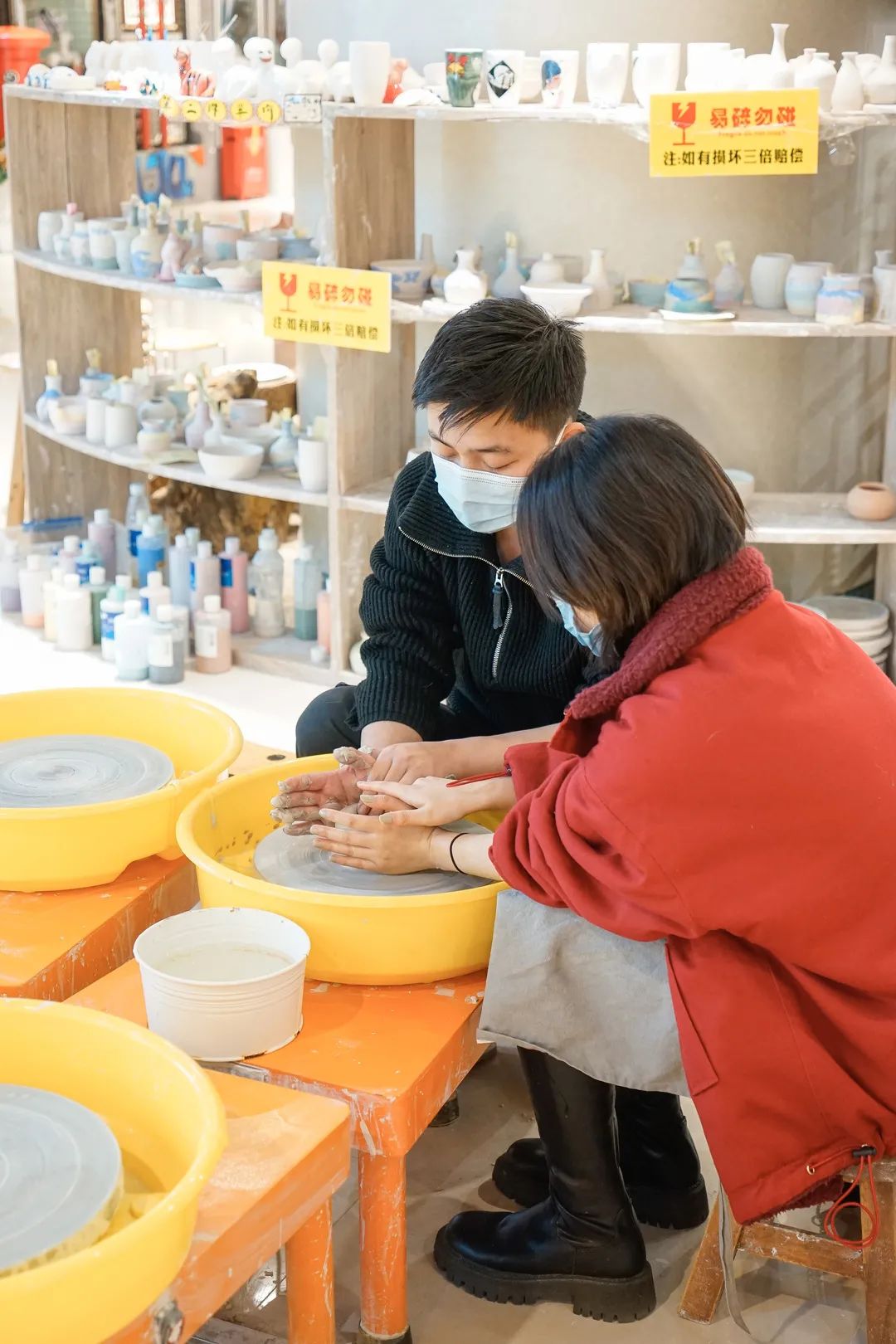 陶艺可不像你想象中“捏泥巴”那么简单。在店员的指导下,手中的泥团才初见模样,定型后,要将它再进行烘烤、上色才算结束。还有让我们印象深刻的沙画创作也绝对是门技术活。虽然总在视频里看,但自己操作后才发现,细软的流沙一点也不听指挥。